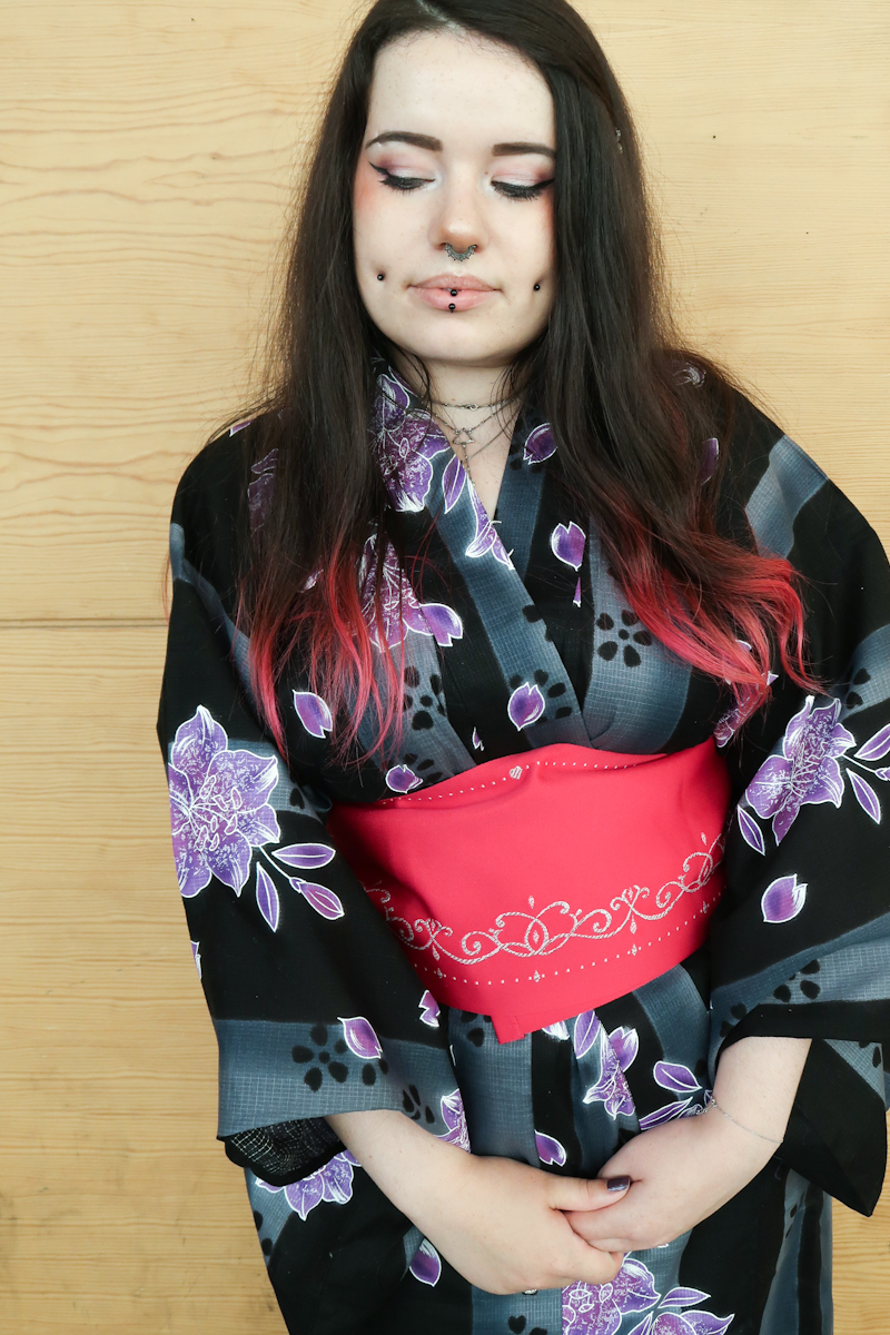 Je préfère la deuxième solution. Si on aime être bien habillée, alors faisons le ! Je vous avais montré le Yukata que j’avais ramené du japon dans ma vidéo Haul Make-up et Fringues Japonaises. C’est un vêtement difficile à porter, mais puisque j’allais à la convention des Geek Days à Lille, c’était l’occasion. Cette convention est plutôt axée jeux vidéos, ou Youtubbers, mais il y avait tout de même une forte composante Manga, alors j’ai pris cette excuse pour mettre mon Yukata.