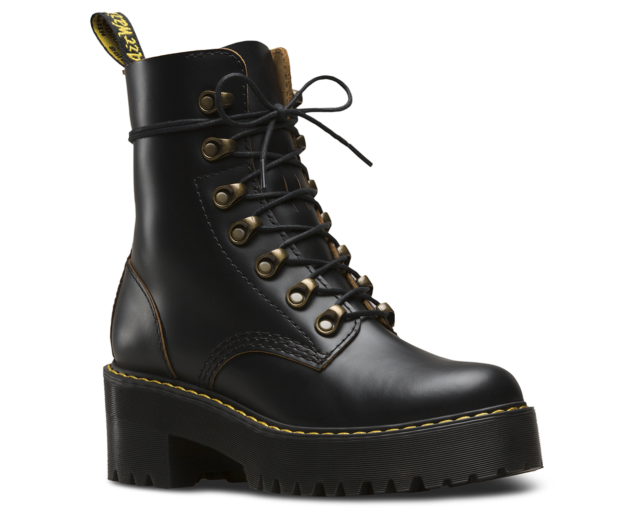 Leona c’est des chaussures avec des oeillets à passant couleur vieillie, pour un lacage très militaire, de grosses semelles (4cm à l’avant, 5 à l’arrière) , coutures apparentes. Des petites rangeos, version féminine quoi. Elles existent en de nombreuses couleurs mais c’est le noir et le bordeau qui m’ont tappé dans l’oeil. Puisque la différence entre la semelle et l’avant n’est que de 1cm, ce ne sont pas vraiment des talons, elles seront donc facile à porter dans la vie de tous les jours. 200€ la paire, mais on est chez Dr Martens, c’est les prix.